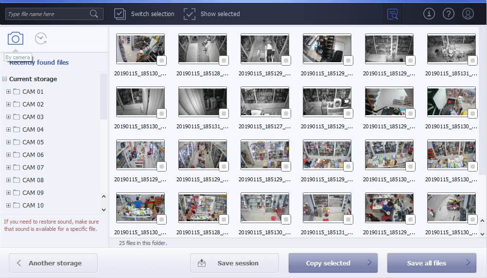 Having finished the scanning procedure, the program will process the found data. Segments of a raw video stream and files of proprietary multimedia formats will be packed into universal *.avi containers, so that they could be viewed smoothly via any common player. Meanwhile, the initial content and order of frames will be preserved, which guarantees the integrity of such a video and thus its credibility.